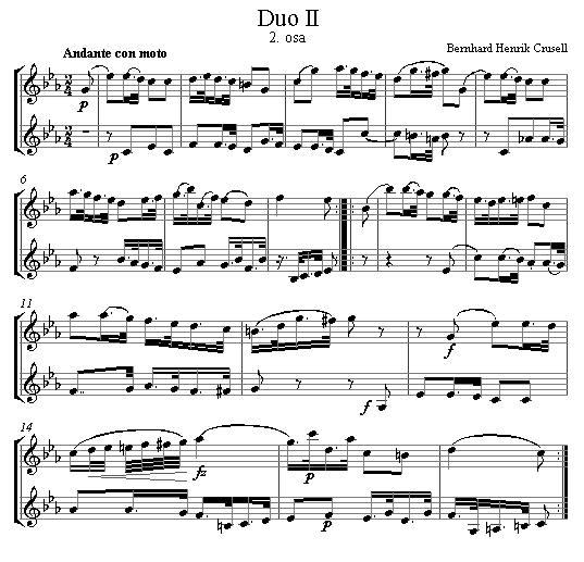| Crusell, Bernhard Henrik | Duo II kahdelle klarinetille c | Osa II | ammattiopetus taidemusiikki |