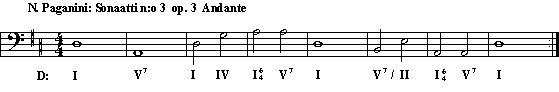 | Paganini, Nicolo | Sonaatti No. 3 D Op. 3 | Andante | opistotaso taidemusiikki |
