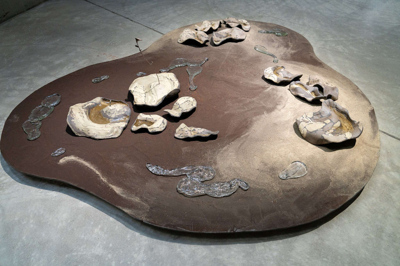 Ajattelen maisemaa olomuotojen kerrostumana. Alueiden yhteensulautumisena. Paikkana, jossa vesi kiertää vuonoissani, jäätyy ja kuivuu pois. Jossa lämpimät ja viileät virrat kohtaavat. Puhdistaen tunnejäämistä ja samalla raviten uutta. Maasta kohoavaa napakkaa kukkaa.